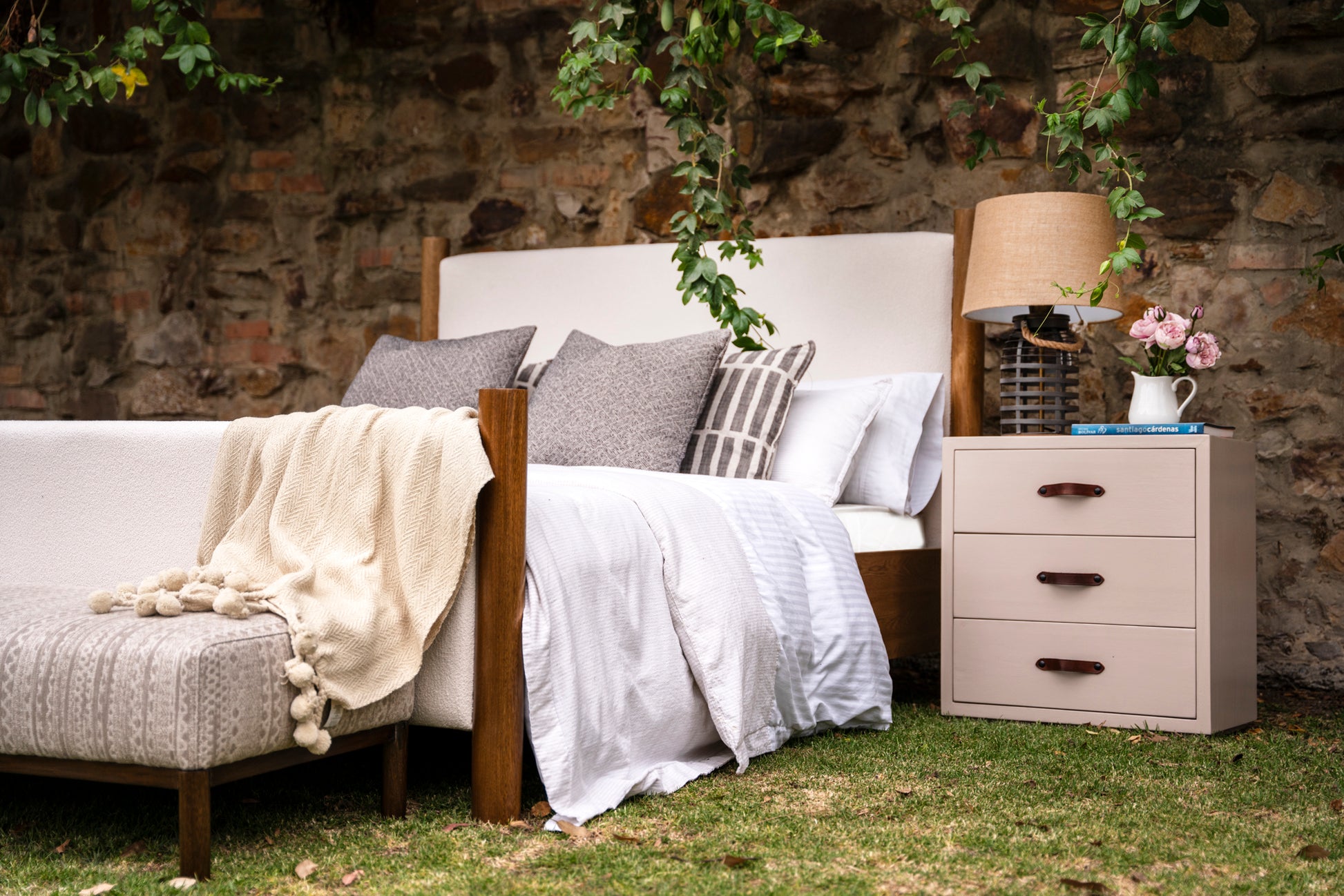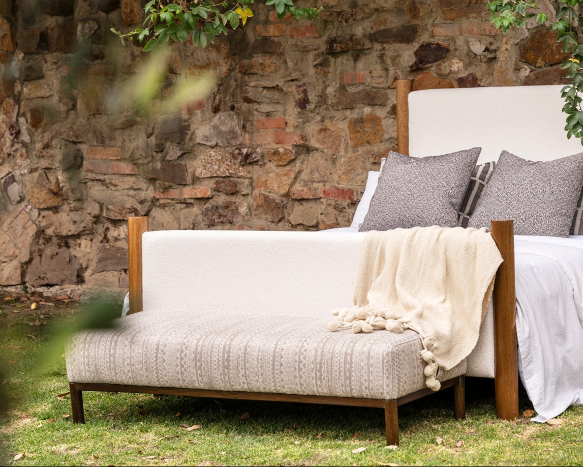 Nuestra cama en tela y madera maciza es una fusión perfecta de estilo y confort. Con su elegante diseño y su sólida estructura de madera maciza, esta cama añade un toque de sofisticación y calidez a cualquier dormitorio.