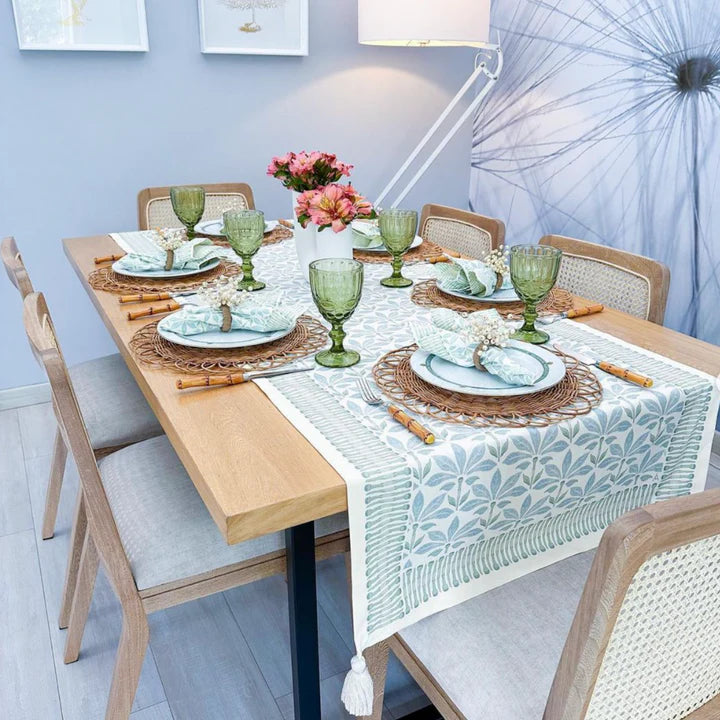 El Camino de Mesa Bubbls combina funcionalidad y elegancia. Confeccionado en poliéster de alta calidad con recubrimiento Scotch Guard, ofrece una protección efectiva contra líquidos, preservando la superficie de su mesa. Sus delicadas borlas removibles en las esquinas aportan un toque sofisticado y versátil, permitiendo personalizar su ambientación con facilidad. Perfecto para quienes buscan un equilibrio entre estilo refinado y practicidad.