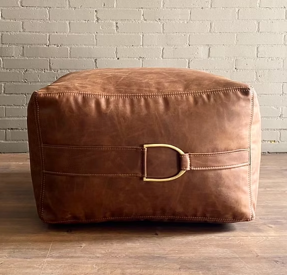Nuestro puff en cuero natural con detalle en metal es una pieza de mobiliario que combina estilo y confort de manera excepcional. Con su diseño elegante y detalles únicos, este puff añade un toque de sofisticación a cualquier espacio.