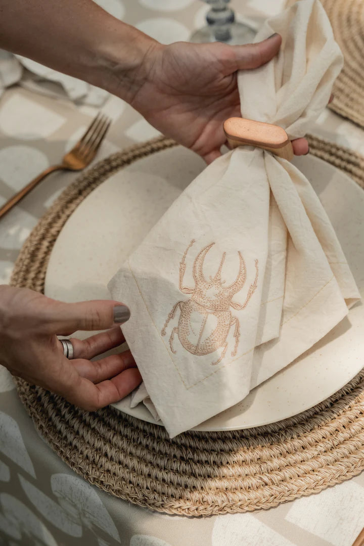 Este set de 4 servilletas de algodón bordado de la colección The Beetle combina elegancia y funcionalidad. Con medidas de 50 x 50 cm, cada servilleta ofrece suavidad y resistencia, realzando cualquier ambiente de mesa con un toque refinado y detallado. Perfectas para ocasiones especiales o para añadir distinción al día a día.