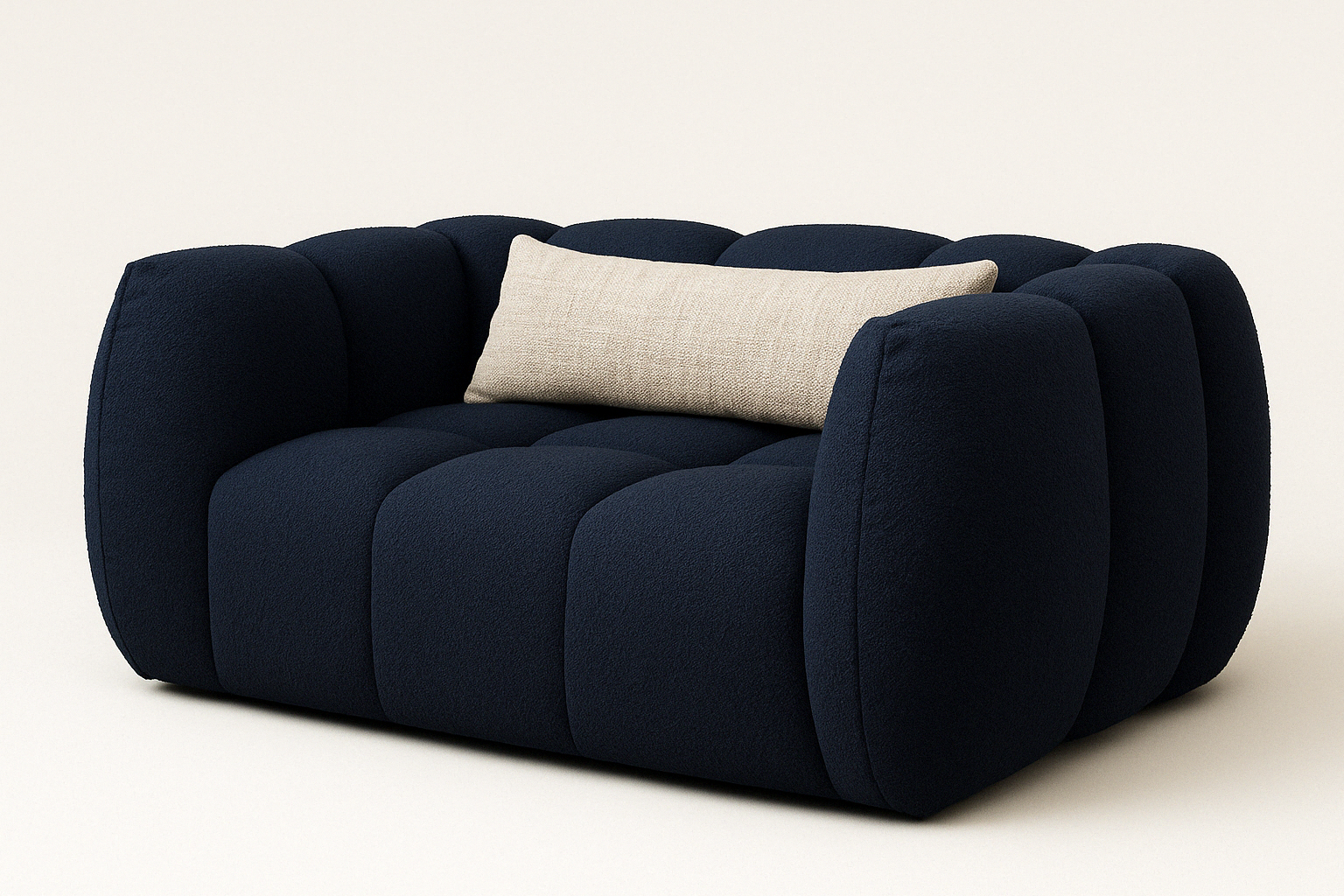 Inspirado en el diseño vanguardista de los años 60, Wave combina líneas orgánicas, curvas generosas y una textura envolvente que evoca la suavidad de una nube. Su forma escultórica, casi como una ola detenida en el tiempo, invita al descanso, al diseño y al asombro.